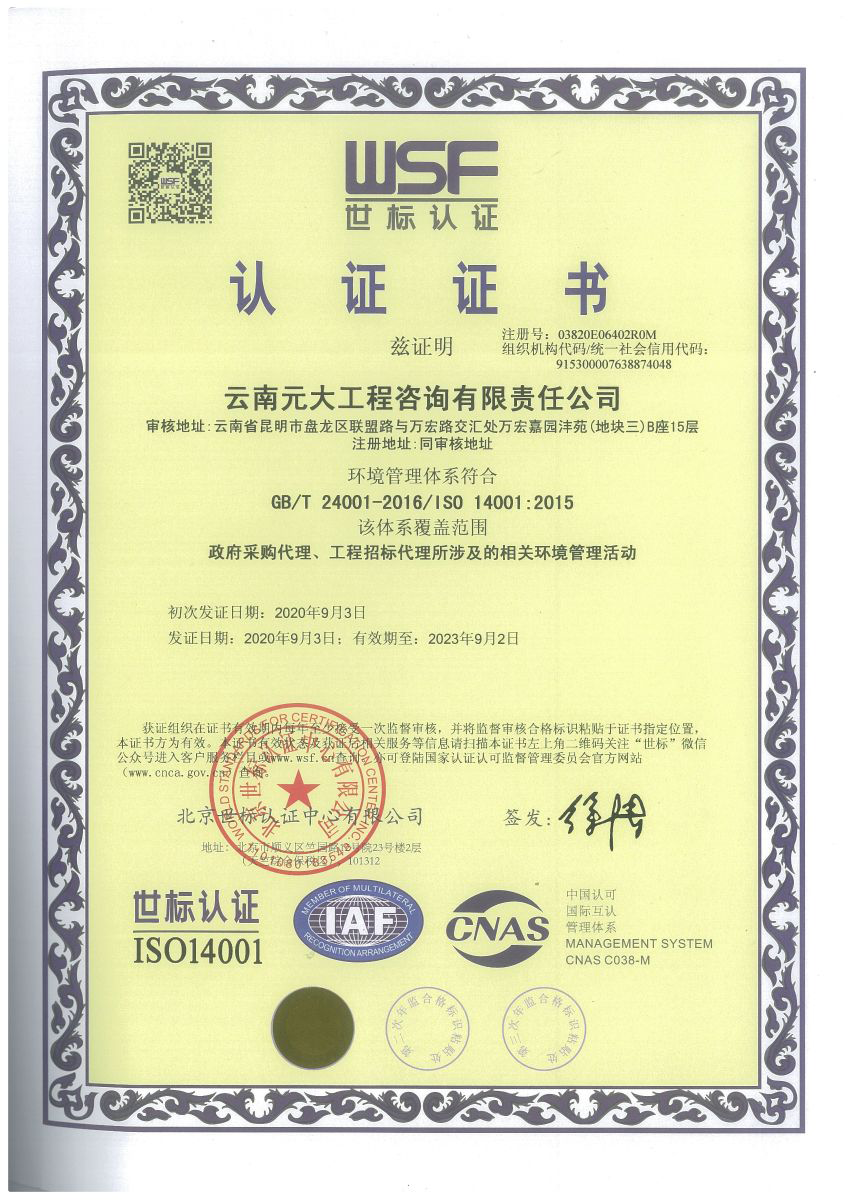 公司是云南省招標投標行業協會會長單位,現為云南省住建廳信用評級招標代理機構AAA級單位。公司先后榮獲住建部頒發的“工程招標代理機構甲級資質證書”、財政部頒發的“政府采購代理機構甲級資格證書”,并在財政部及中國政府采購網“政府采購代理機構名單”登記備案、獲得國家發展改革委頒發的“中央投資項目招標代理機構甲級資格證書”、商務部頒發的“國際招標機構預乙級資格證書”、機電產品國際招標電子交易平臺頒發的“機電產品國際招標電子交易證書”、國家國防科技工業局頒發的“軍工涉密業務咨詢服務安全保密條件備案證書”。公司已通過ISO9001:2015質量管理體系認證、ISO14001:2015環境管理體系認證、ISO45001:2018職業健康安全管理體系認證。納稅信用評價已連續三年被評為A級......